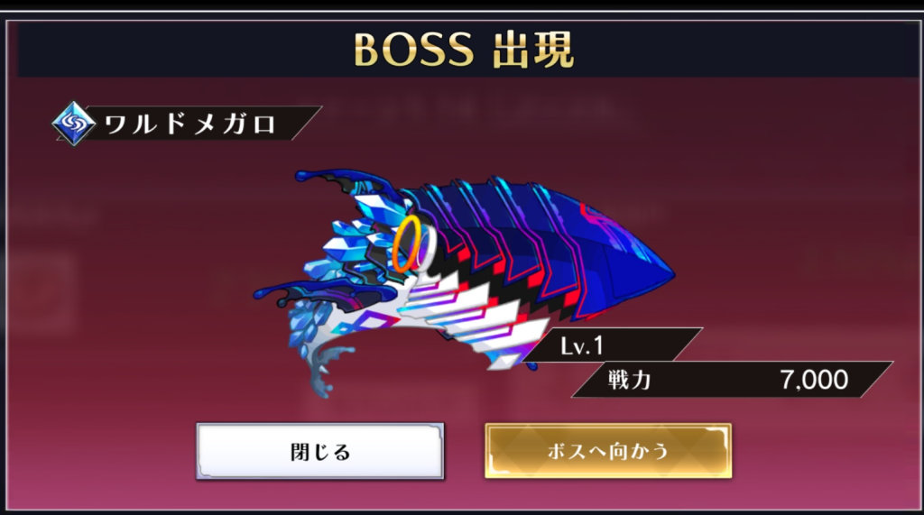 イベントクエストを進めていくとランダムでボスと遭遇します。ボスは10レベルが上限で、進行中のクエストモードによって出現するレベル帯が決まっています。ハードモードでは7レベルまでのボスしか出現しません。勝てないボスを諦めることで、また違うレベルのボスと戦うことが出来ます。